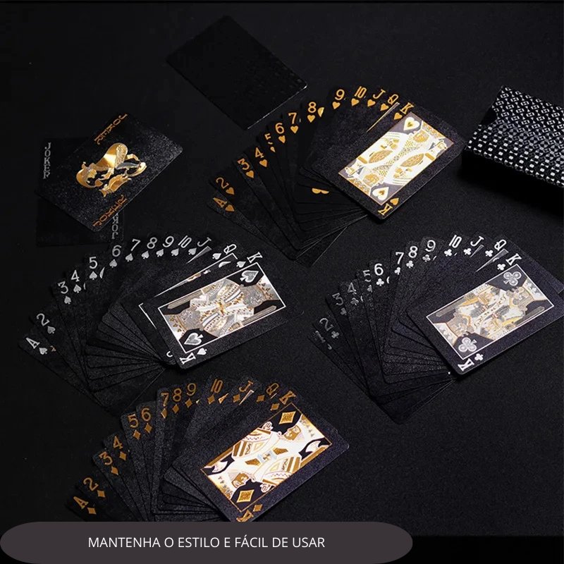 O design de ouro negro dos cartões adiciona um toque de elegância ao jogo e faz com que ele se destaque de outros jogos de cartas.